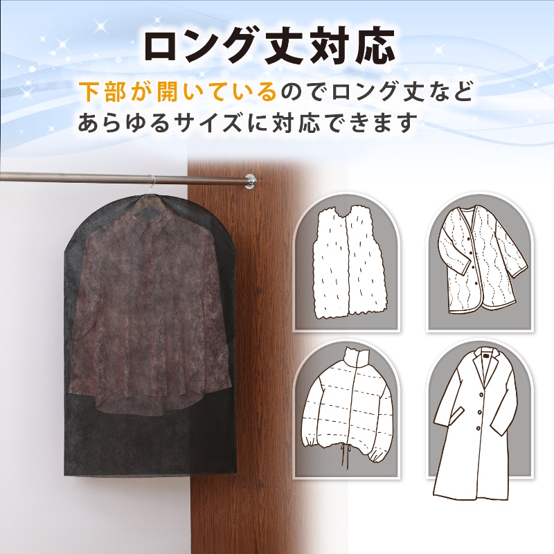 【大感謝祭MAX20%OFF】抗菌防臭 不織布 衣類カバー ロング用 48枚組 605-26